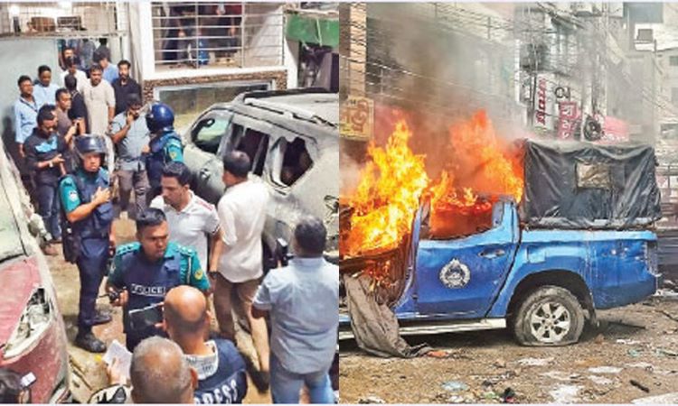 তাঁদের দুইজনেরই পরনে পোশাকের ওপর ডিবি লেখা কোটি ছিল। একজনের কোমরে পিস্তল এবং হাতে ওয়্যারলেস ছিল। অপরজনের হাতে হ্যান্ডকাফ ছিল। তাঁরা দোকানের ভেতরে ঢুকেই তাঁকে গালিগালাজ করতে থাকেন।